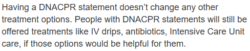 The section starts with an explanation about what CPR is and explains that having a DNACPR doesn’t change any other treatment options: